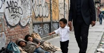 “Dad, stop the car!” he shouted, panic in his voice. “Those kids digging through the trash… they’re just like me.