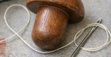Found this smooth wooden object in an old sewing tin. Shaped like a mushroom but the handle is too short to be a pestle.