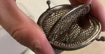 The object in the image looks like a small metal mesh clasp frame, commonly used in coin purses or small pouches.