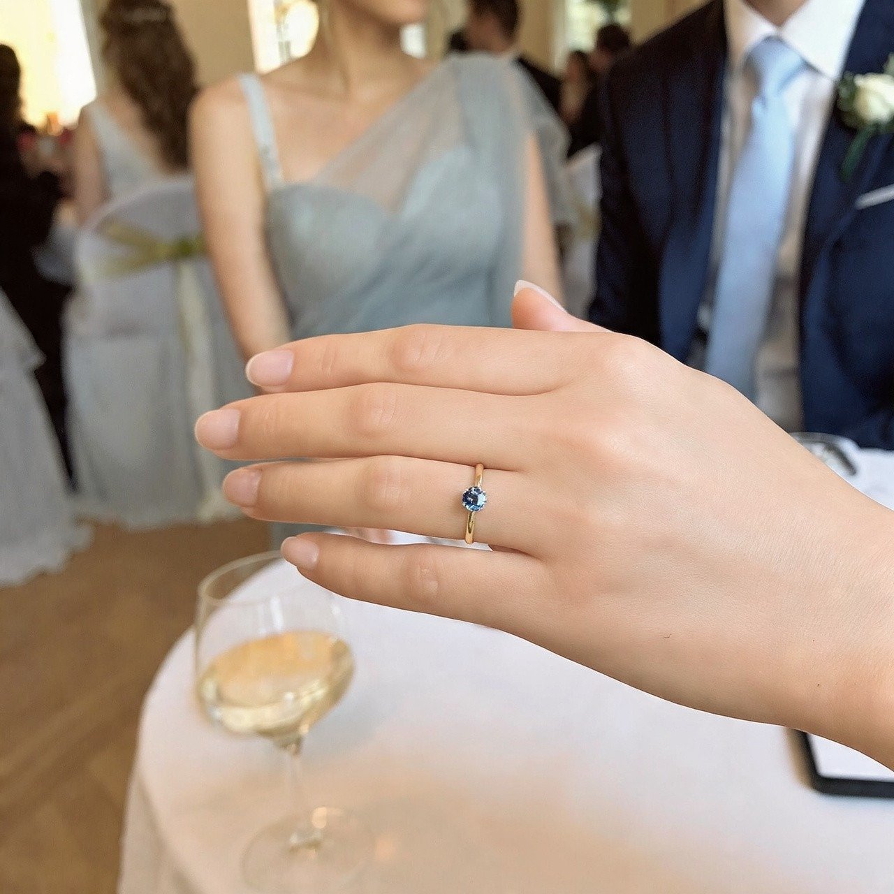engagement ring at their wedding because it was too close to their shade of blue. She said that she’d already had to
