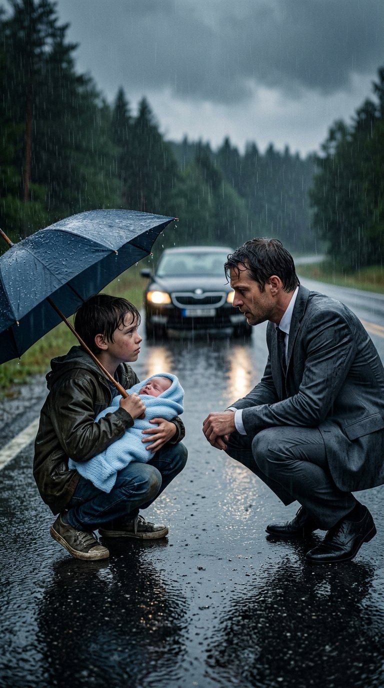 He stepped out into the downpour, ruining his expensive Italian suit. Beneath a withered tree, he found a boy no older than ten, shivering in rags.