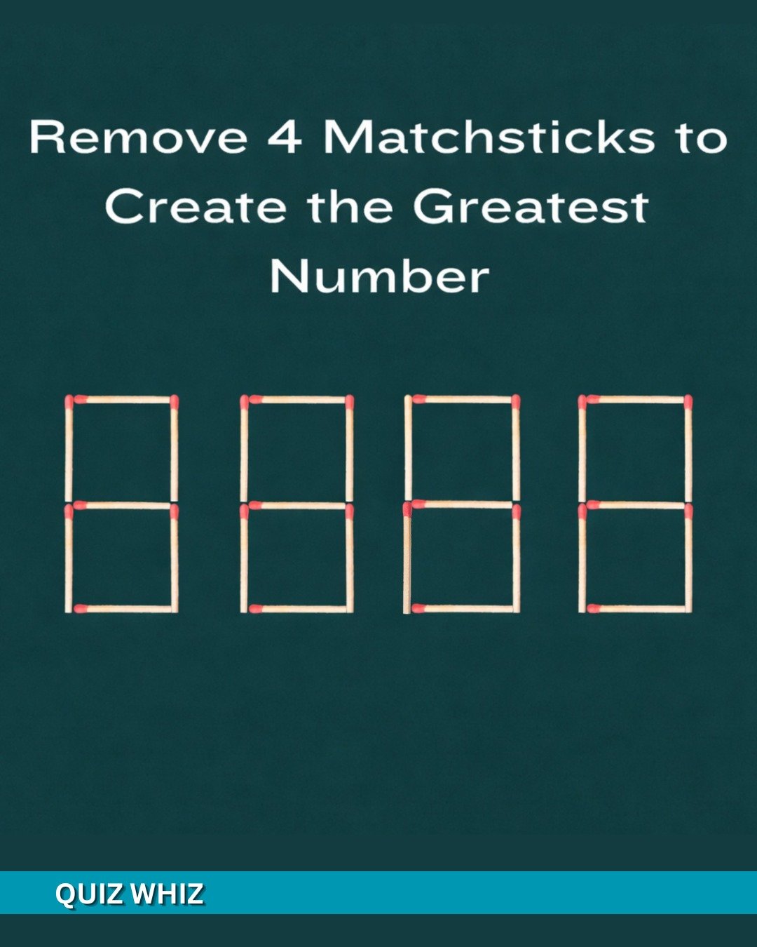 This image shows a fun challenge made with matchsticks. The task is to remove four matchsticks to create the greatest possible number. At first, it may seem confusing because all the digits are 8, which already looks large.