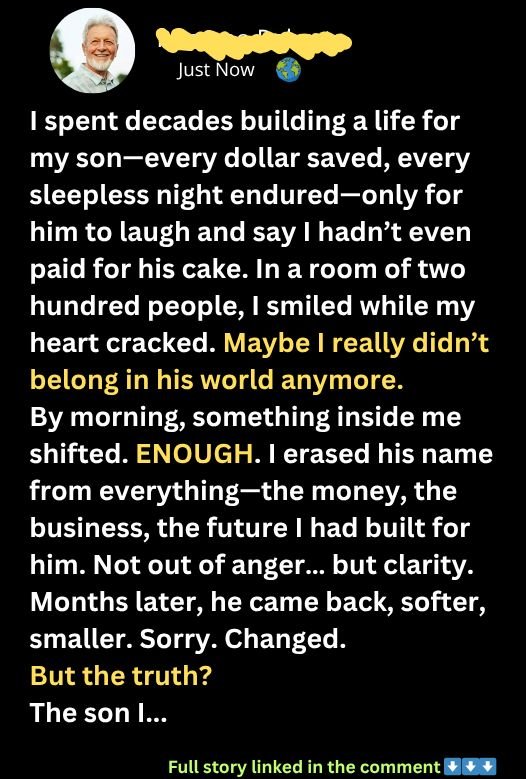 My son humiliated me in front of two hundred people by saying I had not even paid for his cake. I just smiled, stood up, and walked out. By sunrise, his entire future was gone.