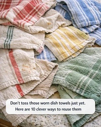 With a bit of sewing, you can convert old dish towels into pot holders and trivets. Cut the towels into squares or rectangles, about 8×8 inches, and layer two or three pieces together for added thickness and protection. Sew around the edges, leaving a small opening to insert additional padding if needed, then stitch the opening closed.