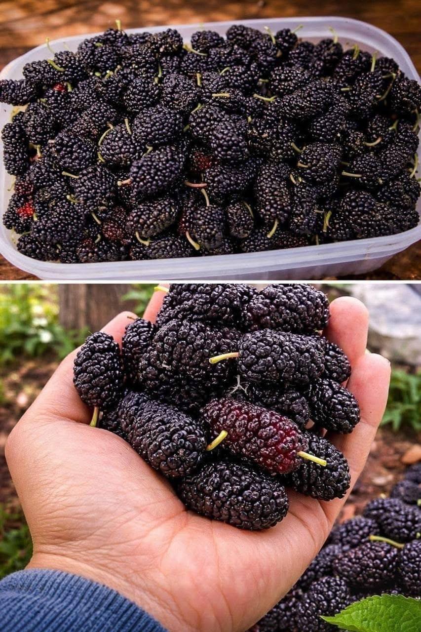 Blackberries are small, elongated berries that grow on mulberry trees. They resemble common blackberries, but are softer and juicier. When ripe, they turn deep purple, dark red, or almost black.