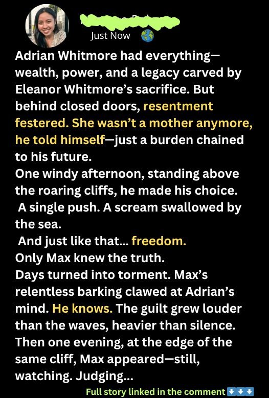 Adrian stood frozen, heart pounding. It was done. But Max barked furiously, pacing at the cliff’s edge. Adrian ignored him. Hours later, police deemed it an accident.