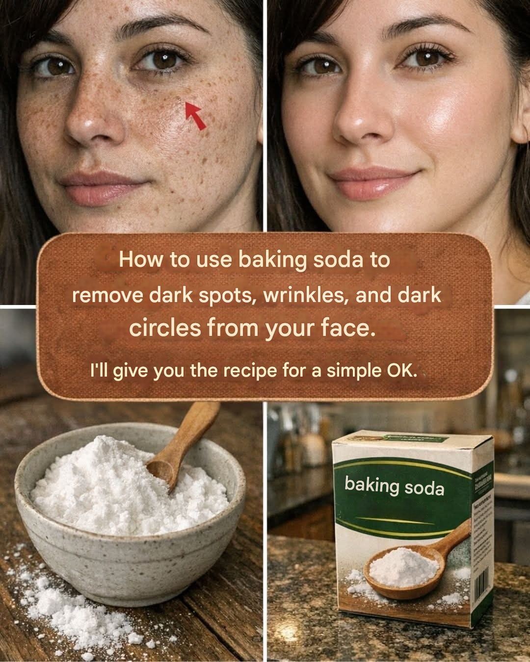 How to use baking soda to remove dark spots, wrinkles, and dark circles from your face. Recipe in the first comment. 👇👇