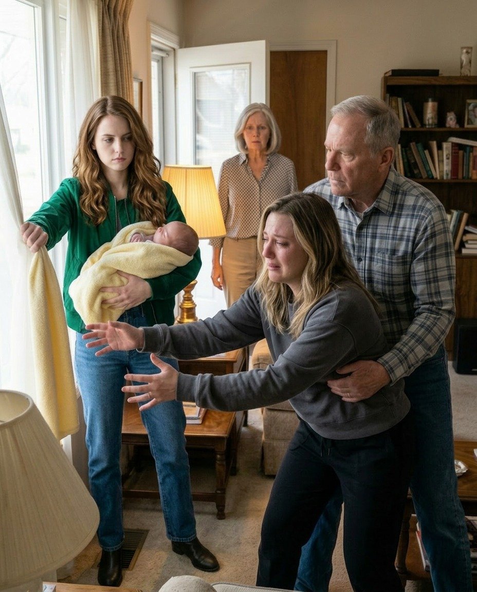 I walked into my parents’ house with my newborn in my arms when my sister snatched her away. My parents didn’t even react. “Sign the house and the car over to your sister. Now.” I let out a weak laugh. “Please… I just gave birth.” My sister leaned in, her voice sharp. “Deed first—or the baby goes out the window.” I lunged forward. My father grabbed me and twisted my arms behind my back. And then my sister crossed a line no one could ever undo. In that instant…