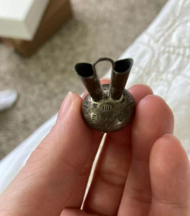 “I was given this small silver object as a pre-wedding gift with no explanation. It has small lines engraved on it.” Any ideas?