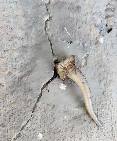 But the longer I looked, the more I realized: it didn’t look like a snake. Its movements were different—not smooth, but jerky, helpless. The creature seemed to be reaching forward, moving inside the wall, but its tail remained outside. “Probably something huge with a thin tail,” I thought.