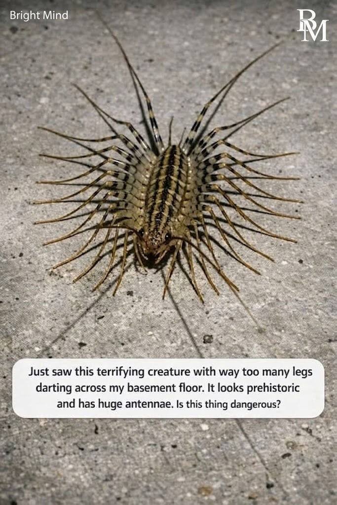 Just saw this terrifying creature with way too many legs darting across my basement floor. It looks prehistoric and has huge antennae. Is this thing dangerous?
