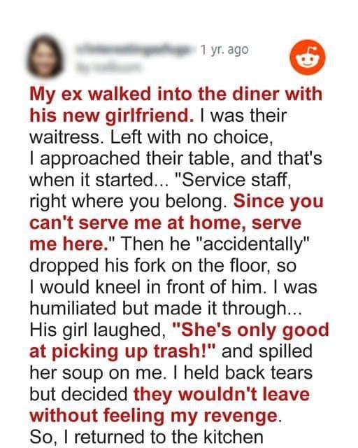 When Miranda wiped down the kitchen counter with meticulous care, her mind still reeled from the morning’s events. Carlos, her ex-boyfriend, had made an unexpected appearance at the restaurant where she worked, his intentions clearly aimed at h_umiliating her in front of her colleagues and customers. Despite the ache in her chest and the embarrassment burning in her cheeks, Miranda knew she couldn’t afford to let this setback derail her hard-earned stability.