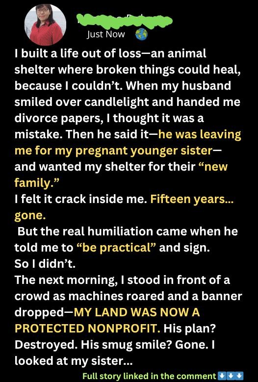 My husband told me he was divorcing me for my pregnant younger sister — then tried to take the animal shelter I built and turn it into their family home. He thought I would quietly sign the papers, but he was wrong! By morning, I had a plan to teach them a lesson they’d never forget.