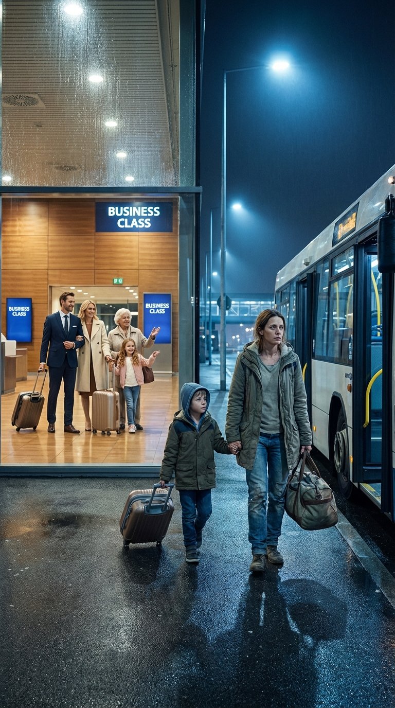 While my son and I were put on a 12-hour bus journey, my sister’s child was given a seat in business class. My mother laughed directly in my face. “Did you honestly think you’d be flying business class?” My sister smirked and added, “A filthy bus is exactly where you belong.”