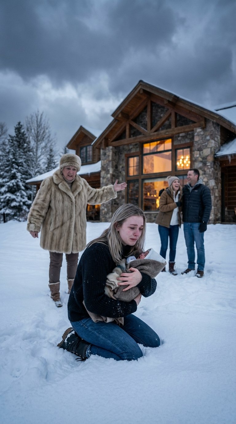 As I stepped onto the wide front porch, the icy storm immediately cut into my skin. Eleanor stood in the warm entryway, smirking a final cruel farewell before slamming the heavy door shut, sealing our fate..