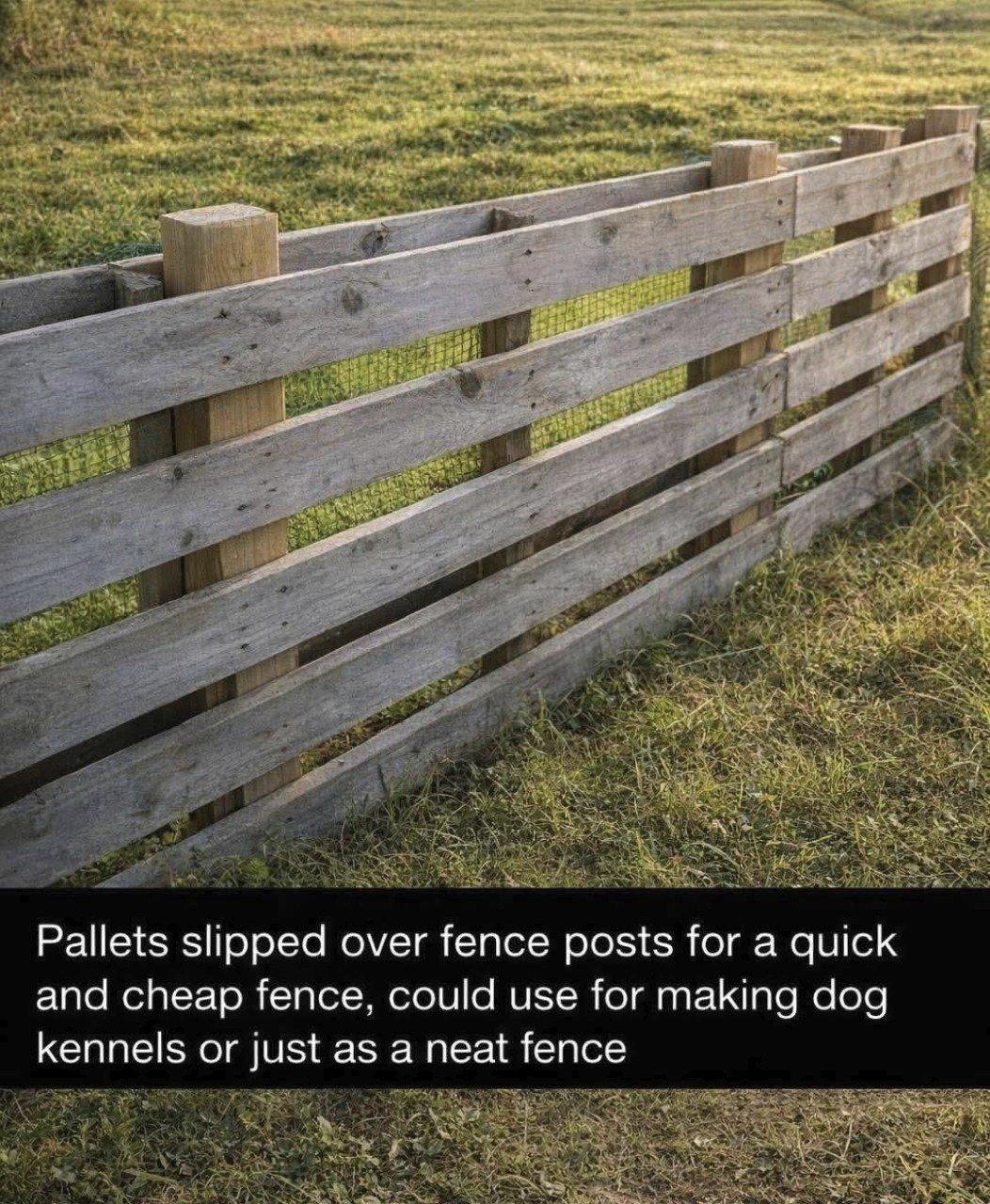 Instead of building a fence from scratch, this method uses pallets as ready-made panels.