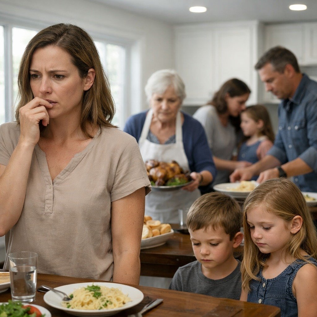 My blood ran cold. It wasn’t just the words. It was the physical sensation—like stepping into a freezer. My mother-in-law didn’t even look up to acknowledge my arrival. She just kept serving, smiling at her “real” grandchildren.