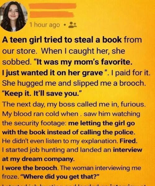 The woman walked to the register, paid for the book from her own pocket, and handed it back to the girl without conditions. The girl held her tightly for a long moment before leaving. As she pulled away, she pressed something small and cool into the woman’s palm.