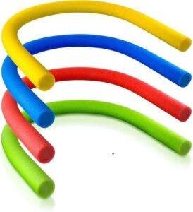First, cut the noodle into 1–3 inch slices to create soft foam rings. Keep the cuts even for symmetry. Gently reshape them if needed. For larger loops, you can slit and re-tape the noodle into a full circle.