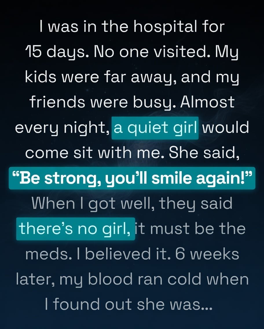 I lay in that hospital bed feeling abandoned by my own life, trapped in a body that no longer felt like mine. The girl’s presence became my only anchor. She said little, but her calm gaze and that single whispered promise—“You’ll smile again”—cut through the numbness more than any medicine. When the nurses denied she existed, I almost let myself believe I had invented her just to survive.