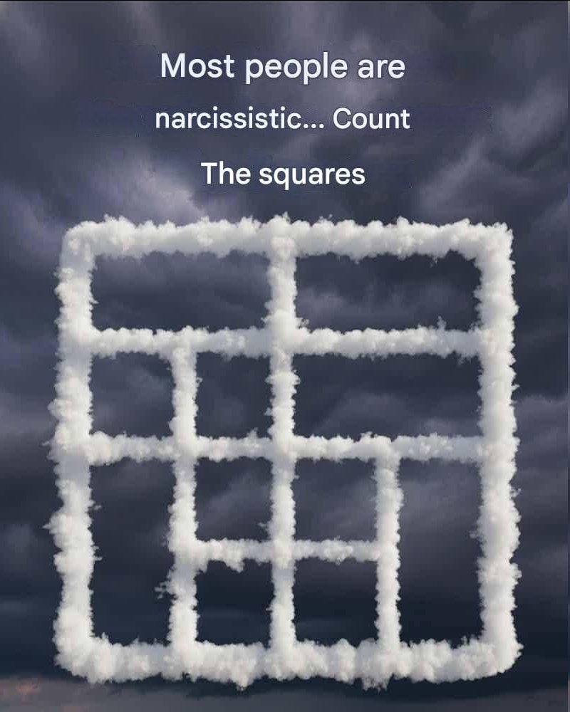 A small visual puzzle is circulating on the internet: it shows only a cloud silhouette filled with a square grid. It often appears accompanied by a striking statement: “Most people are narcissistic,” followed by the challenge: “Count the squares.”